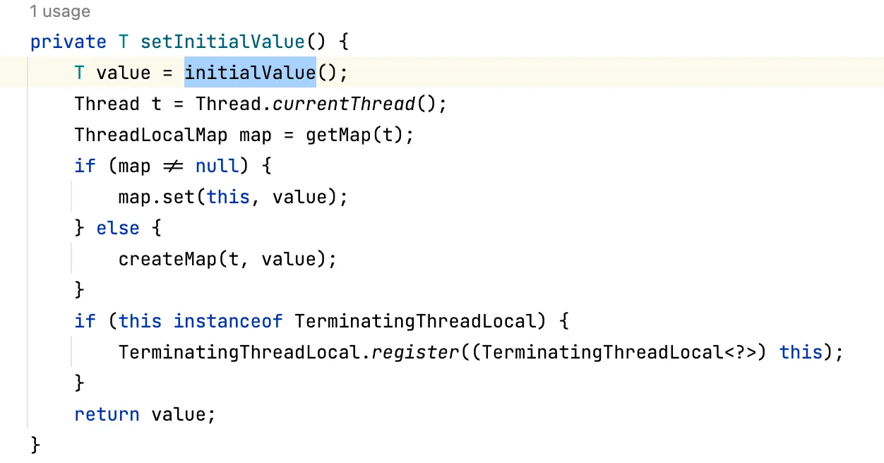 ThreadLocal.get 메소드가 처음 호출되었을 때 초기화된다!