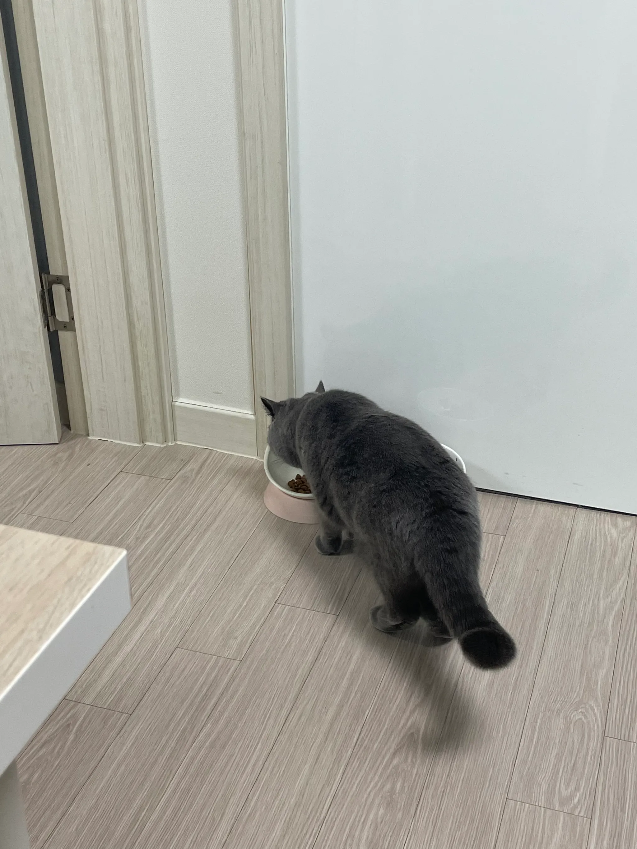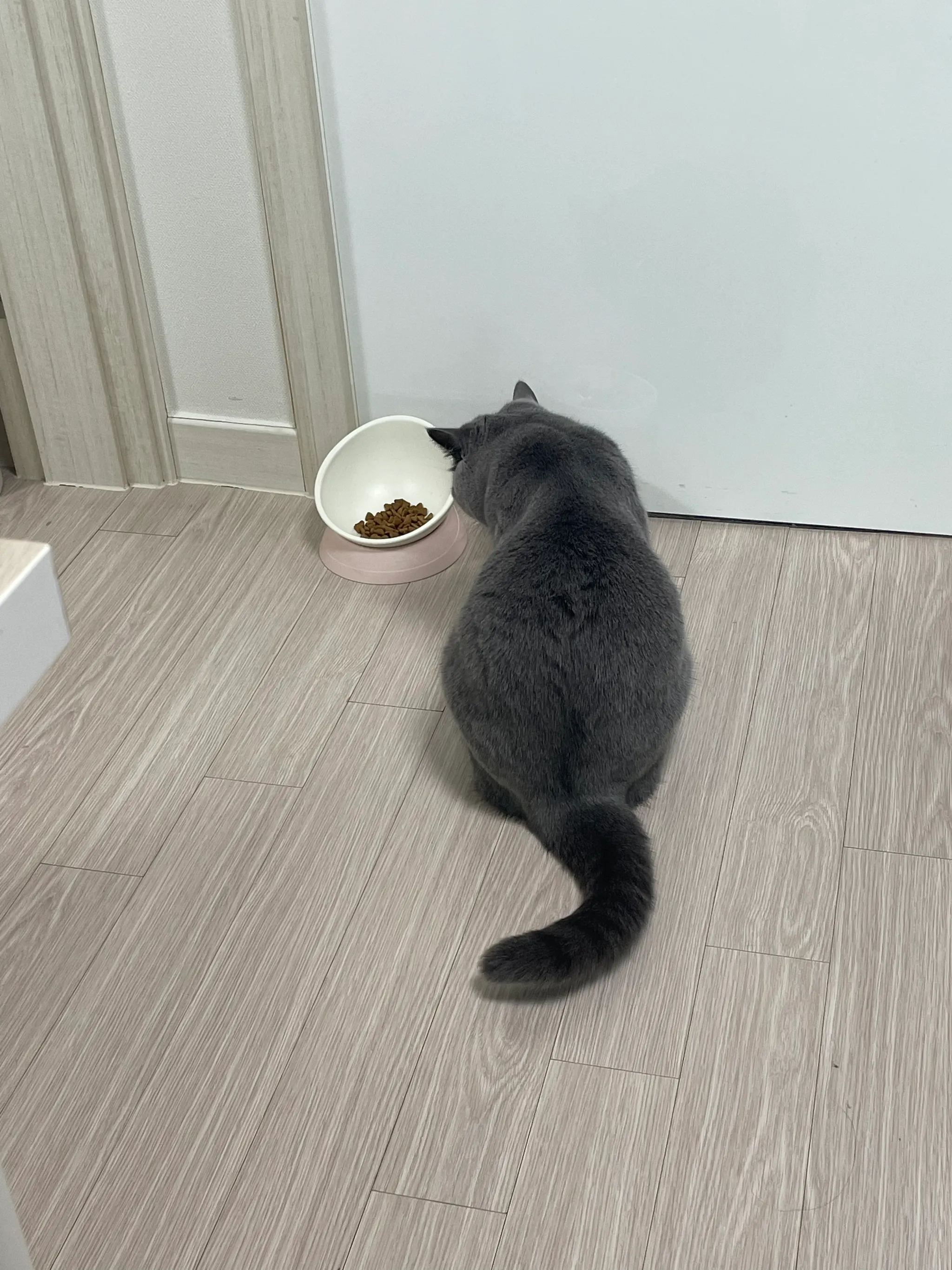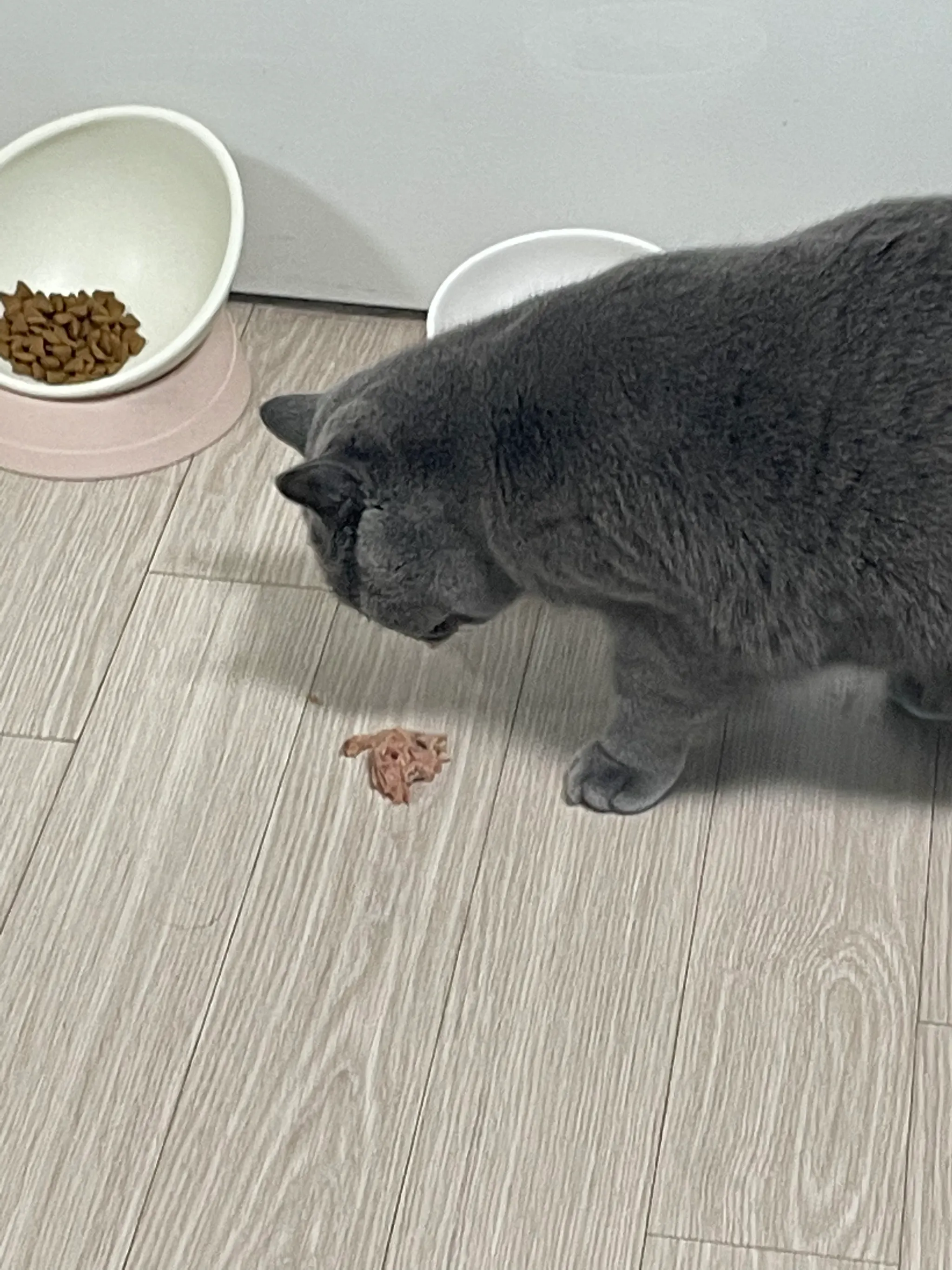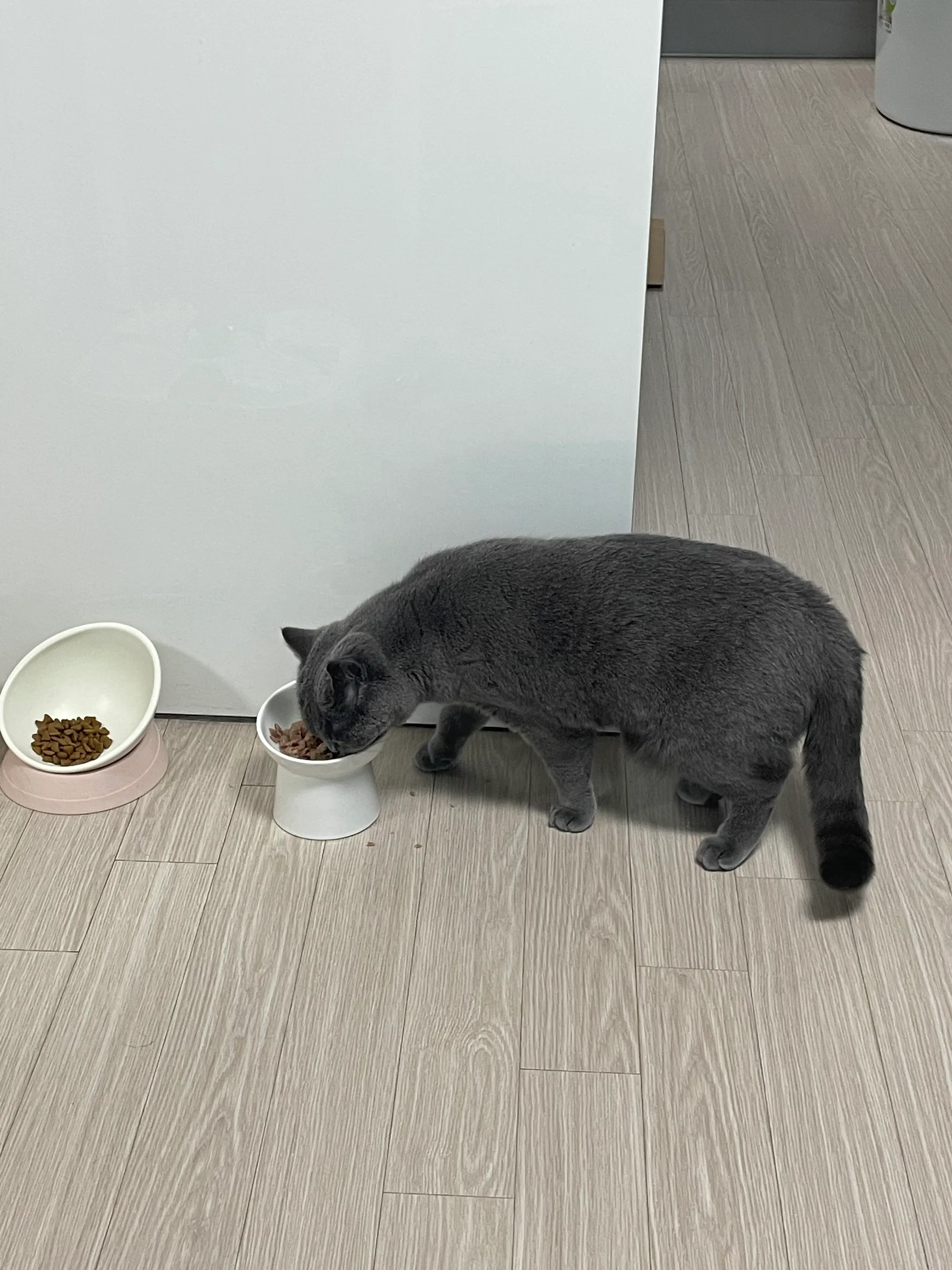 아무래도 뻑뻑한 타입이라.. 잘 흘린다ㅠ 먹기 불편한지 그릇에서 꺼내서 먹어서 바닥이 사료범벅..